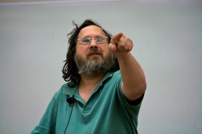 Qui de plus approprié pour cette première chronique Librologique, que Richard Stallman ? Né en 1953 — l’année même où paraissaient les premières Mythologies de Roland Barthes, auxquelles nous rendons ici hommage —, il est tout à la fois le premier auteur de logiciels tels qu’Emacs ou GCC, le fondateur du projet GNU, le co-auteur de la licence GPL et FDL, et par là l’instigateur du mouvement du logiciel Libre. Cependant, son apport a très tôt dépassé les frontières de l’informatique : on lui doit notamment la première ébauche de l’encyclopédie Libre Wikipédia, et sa page personnelle témoigne de la diversité de ses préoccupations : droits de l’Homme, libertés civiques, nouveautés scientifiques et patrimoine culturel...