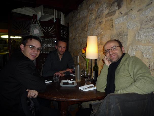(Juste au passage : Jochen vient de m’envoyer une photo où l’on nous voit ensemble, en compagnie de Lewis Trondheim. Cette photo devrait achever de convaincre tous ceux de mes lecteurs qui ne m’ont pas vu depuis plusieurs années et qui ne me croient pas quand je les préviens que j’ai pris 30 kilos pendant l’écriture de l’opéra.)